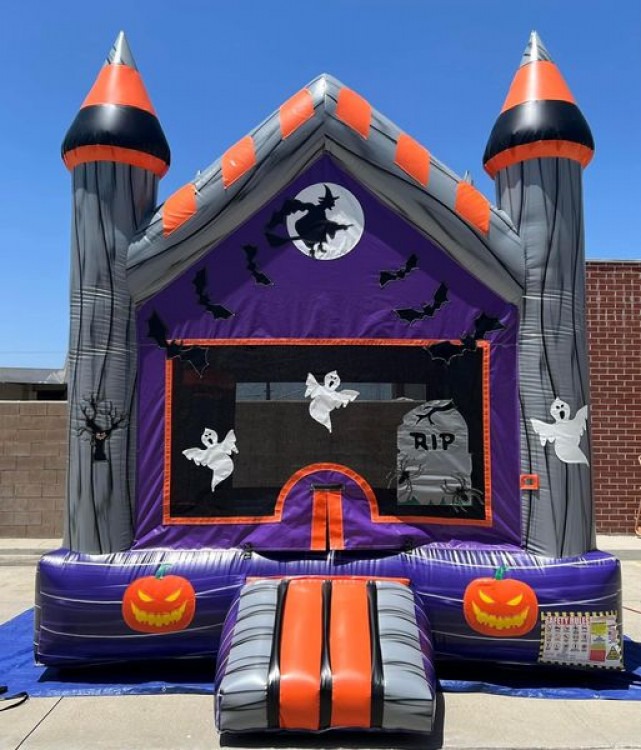 New in 2022, the Halloween themed bounce house will be available starting September 29, 2022. This bouncer is 13x13 square and is 13' tall.