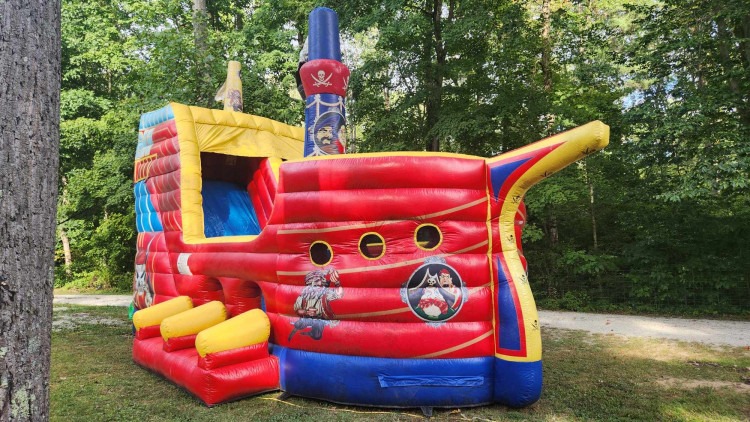 Sail away with our cool pirate ship combo! Slide, jump, and dodge the obstacles with this great inflatable. Measurements are 25 L x 12 W X 18 H.