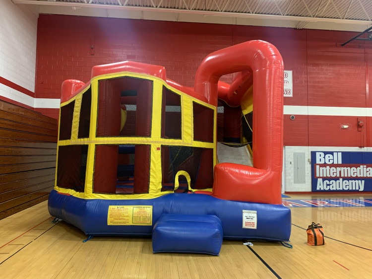 The Combo Basic has great colors for all events, one entrance/exit, and a great slide inside with obstacles and a basketball shoot!