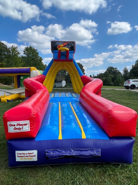 - OCCUPANCY: A maximum of 5-6 kids of equal size at one time for bounce houses, and 1 person at a time for slides is what most inflatable manufacturers recommend.