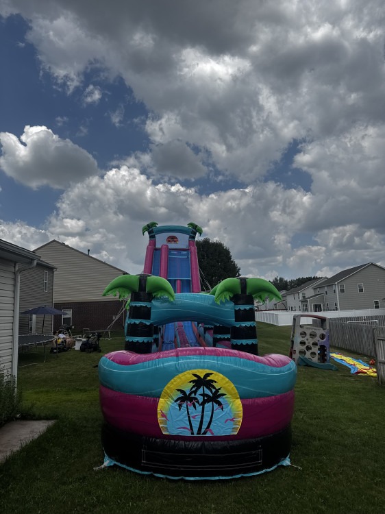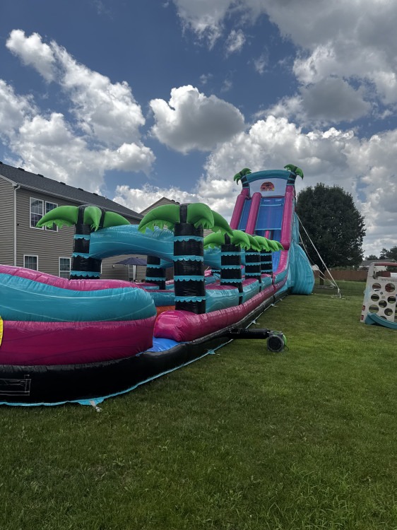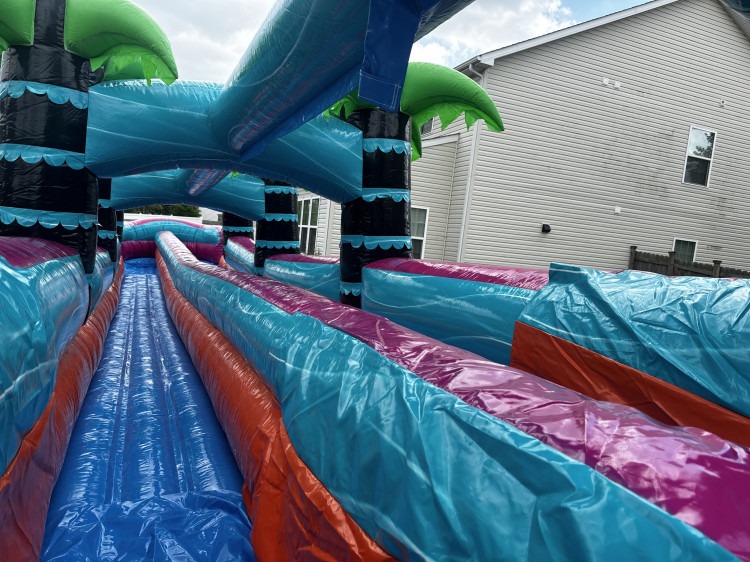 The biggest slide around at 32' tall and just over 90' in length and is a DOUBLE LANE!   The slip-n-slide portion is a whopping 45' in length!  Be the big talk with this incredible slide!